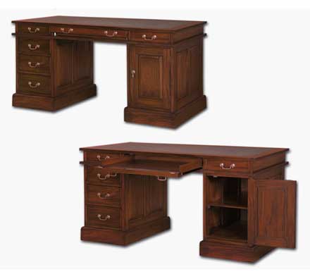 Стол письменный из массива для Вашего кабинета станет не только украшением, которому позавидуют все гости, но и статусной вещью, символом достатка и престижа. Стоит ли говорить о функциональности данного предмета интерьера - без него не обойдется ни один кабинет. Фабрика «Satin Furniture» представляет мебель для жилых помещений выполненную в классическом стиле. Ассортимент включает в себя мебель для сидения, столовых и гостиных, кабинеты и множество аксессуаров. Данная продукция полностью выполнена из массива гивеи-махагонь (красного дерева ). Все элементы мебели обрабатываются вручную. Удачно подобран цвет лакокрасочного покрытия орех («New Antique»). Покрасочные материалы были разработаны бельгийскими специалистами и поставляются непосредственно из Европы. Мебель поставляется из Индонезии в собранном виде. Для соединения деталей в производстве используются винтовые и шкантовые (шкант-чепики) соединения, также при сборки мелких частей – клеевые соединения.
