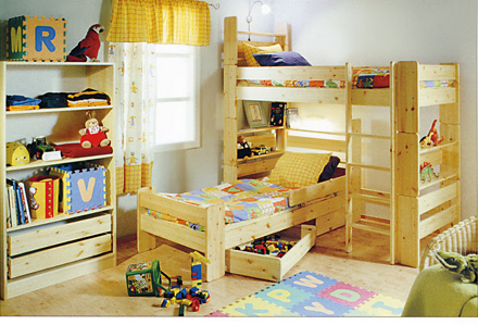 Детская мебель состоит из кровати и лежанки Индивидуальная кровать предназначена для растущего ребенка. Прочная конструкция, размеры и тщательно продуманные детали обеспечивают возможность ее использования как в качестве индивидуальной кровати, так и как часть комплекта.Лежанка позволяет придать обстановке комнаты новый облик.Лежанка занимает небольшую площадь и позволяет использовать освобождающиеся место для других целей. Одновременно торцевая этажерка лежанки образует естественное место для хранения вещей.