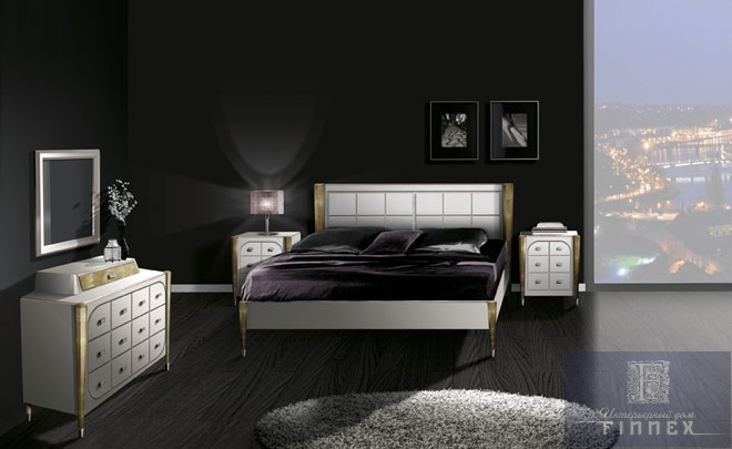Спальня, производство испанская фабрика Lino. Выполнена из МДФ+ шпон полисандра. Мебель может быть выполнена в черном и белом цвете, пилястры выдвизные ящики могут быть декорированы сусальным золотом или серебром. Ручки украшены стразами Svarovsky. Есть возможность заказать кровать или изголовье кровати.